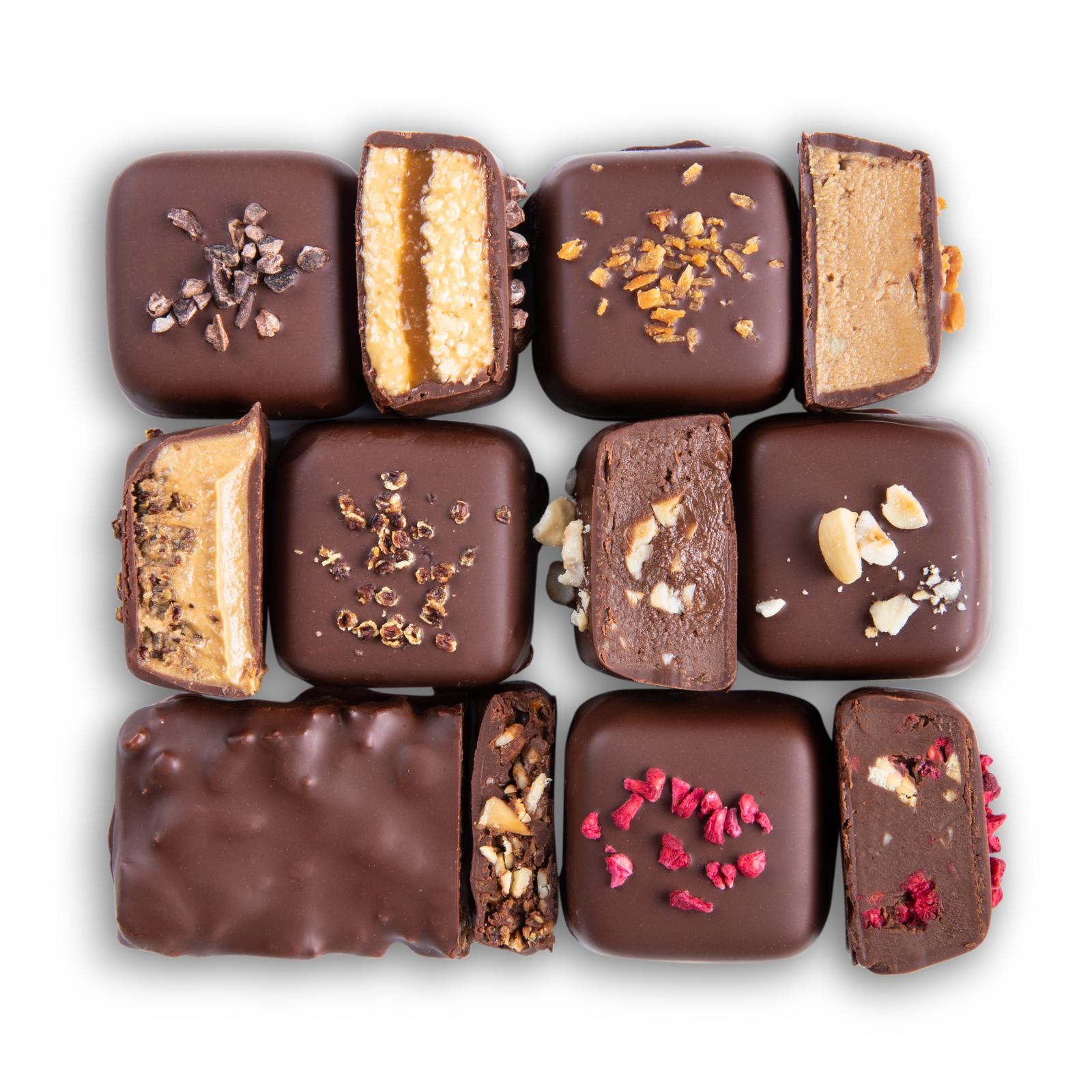 • קראנץ' פטל ונוגט מריר: שילוב עז של שוקולד מריר איכותי, שקדים מובחרים ופטל בטכניקת ייבוש השומרת על פריכות וערכים תזונתיים.