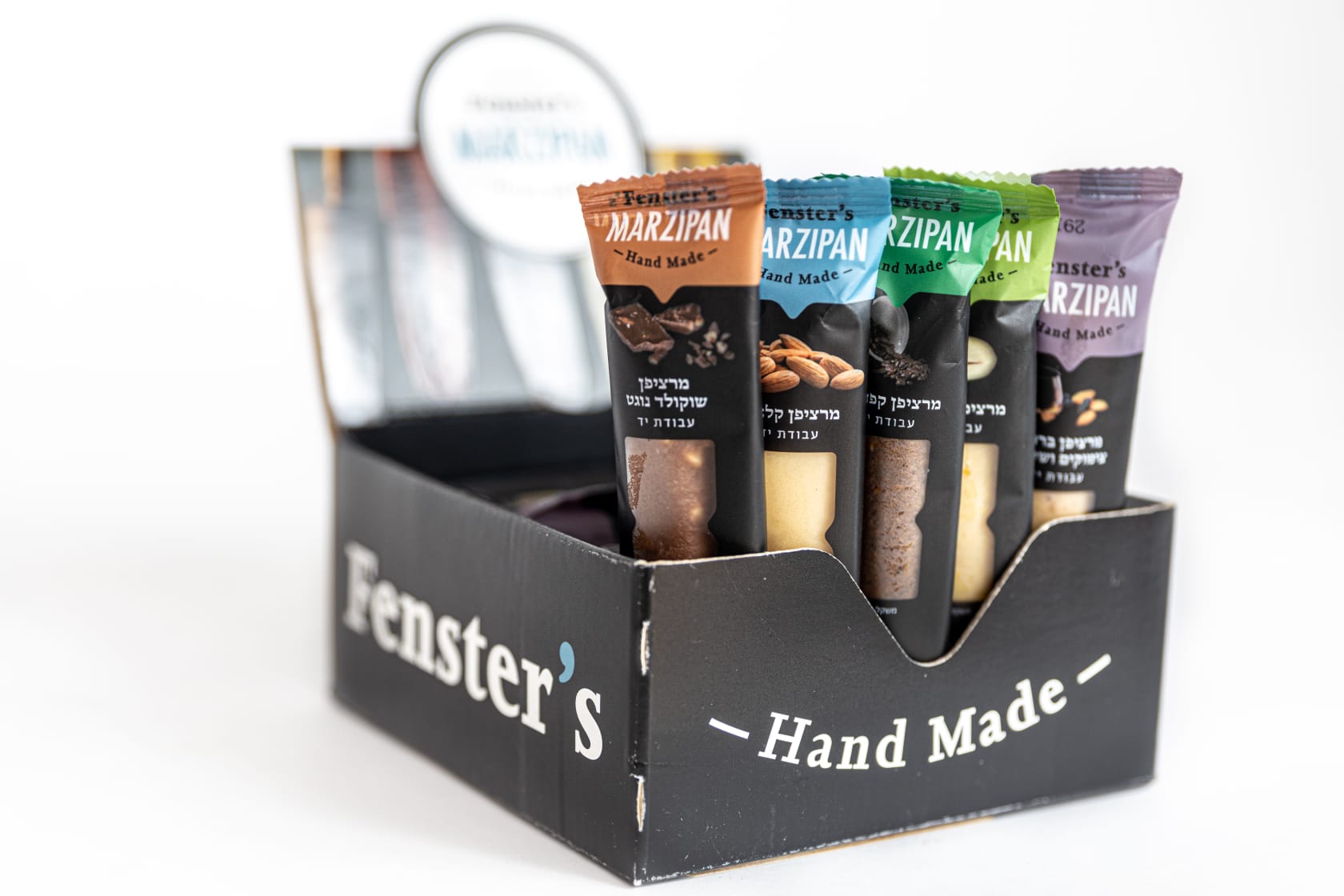 המרציפנים של Fenster's הם גולת הכותרת של המותג, עם שישה טעמים מרגשים ומפתיעים: קלאסי // פיסטוק // דובדבן אמרנה // אספרסו // לימון סיציליאני // אוכמניות // מרציפן בתוספת מי ורדים.